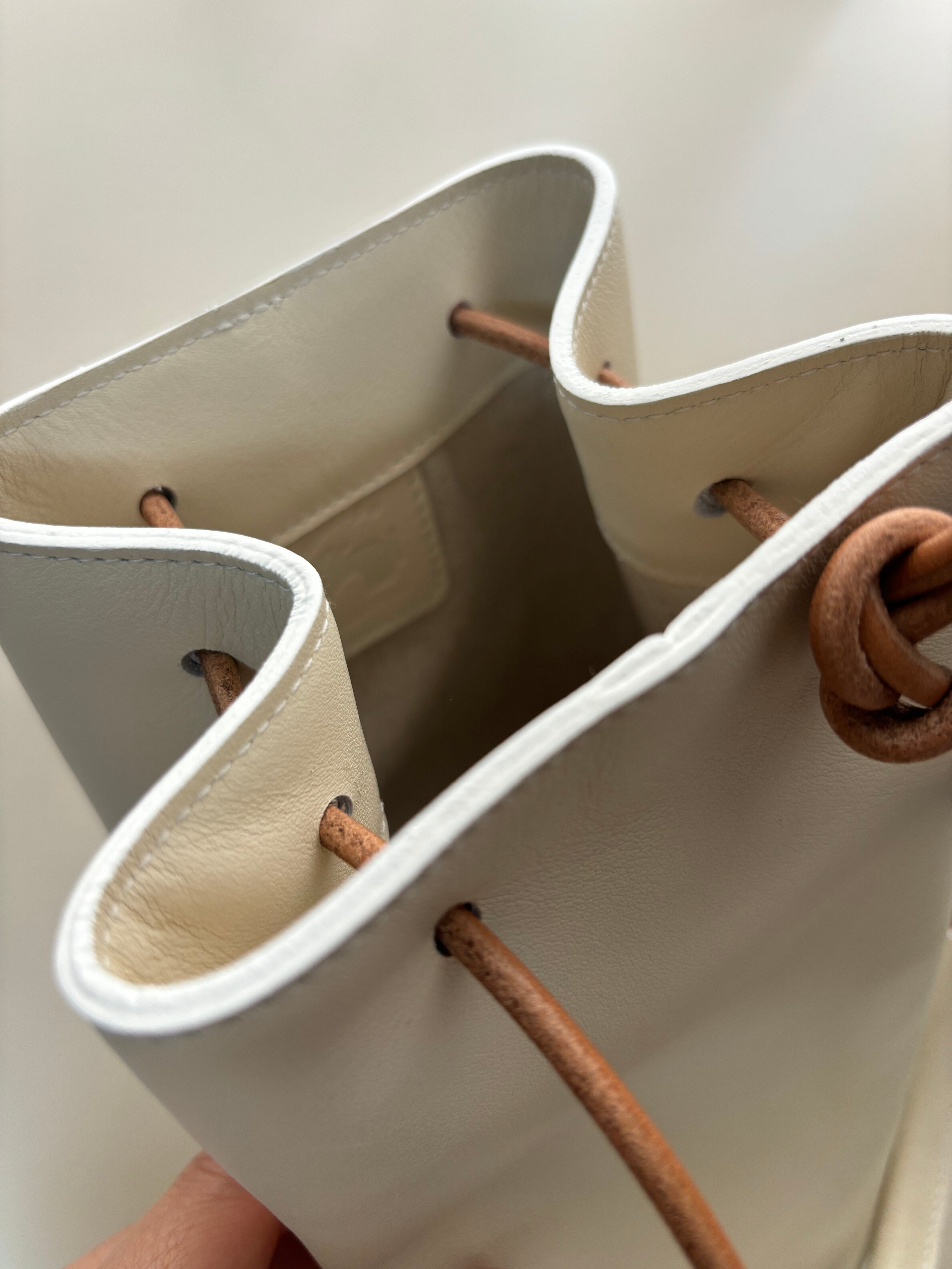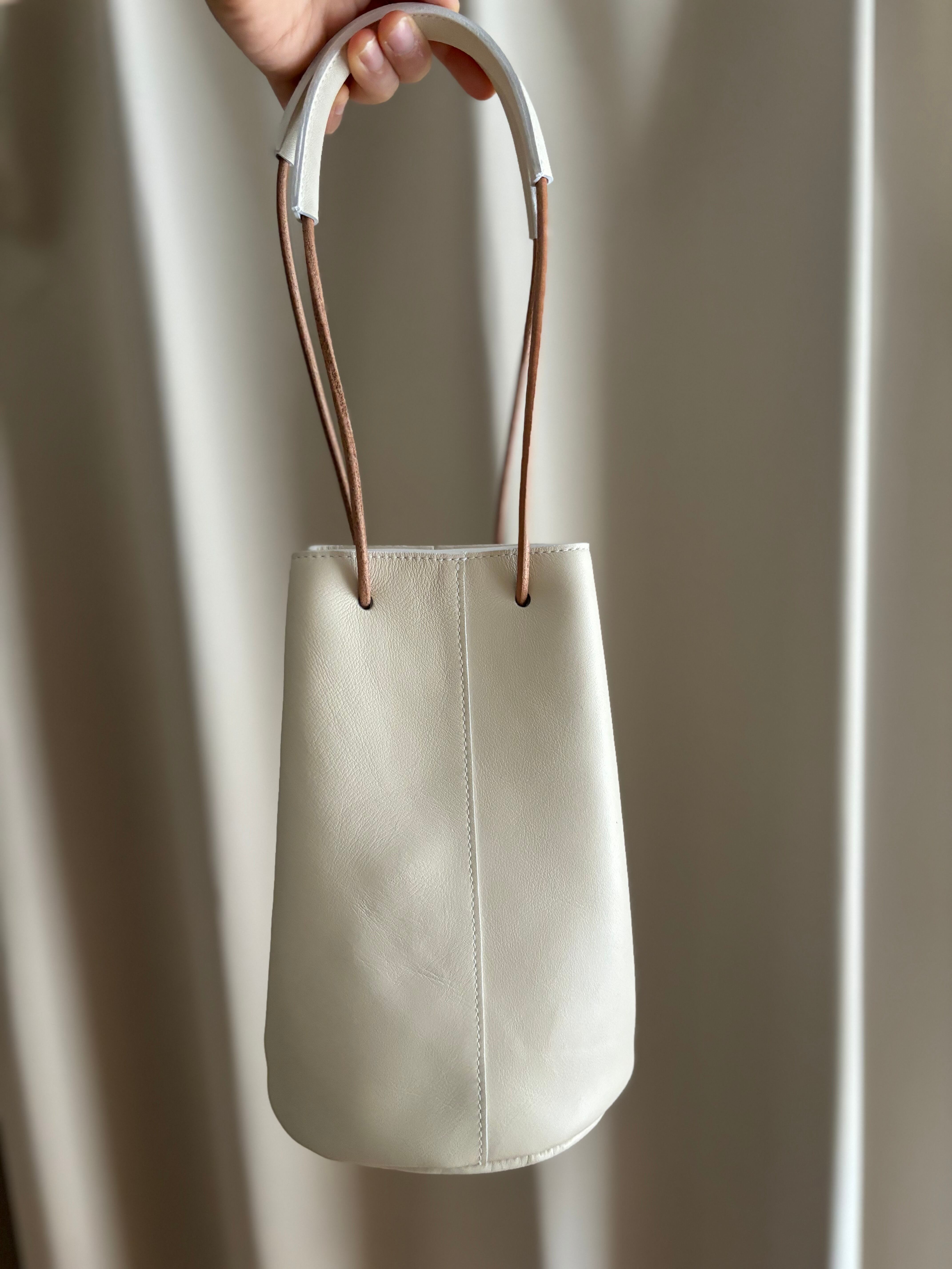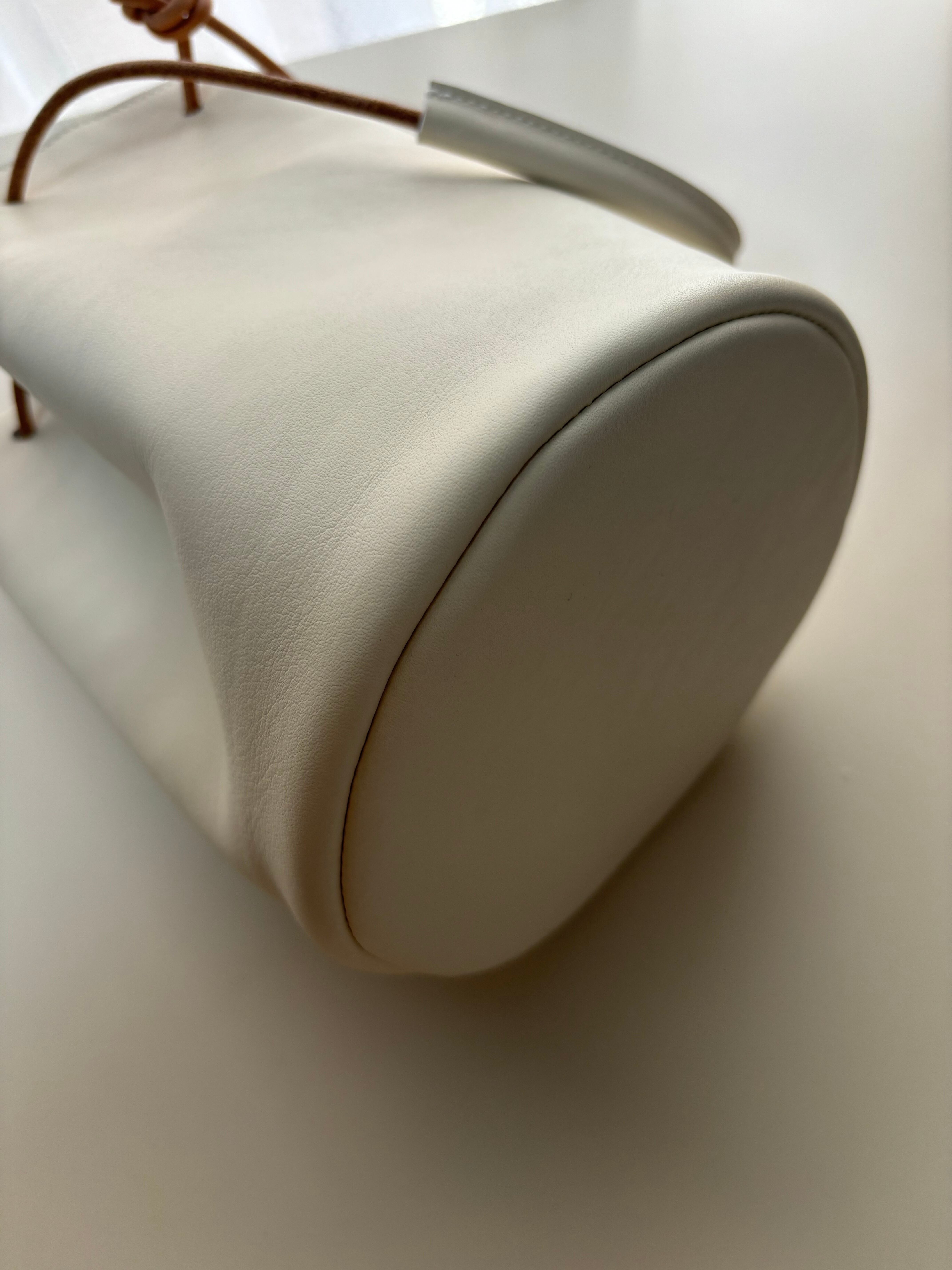 シンプルでありながら、独自の魅力を持つレザー巾着バッグ。